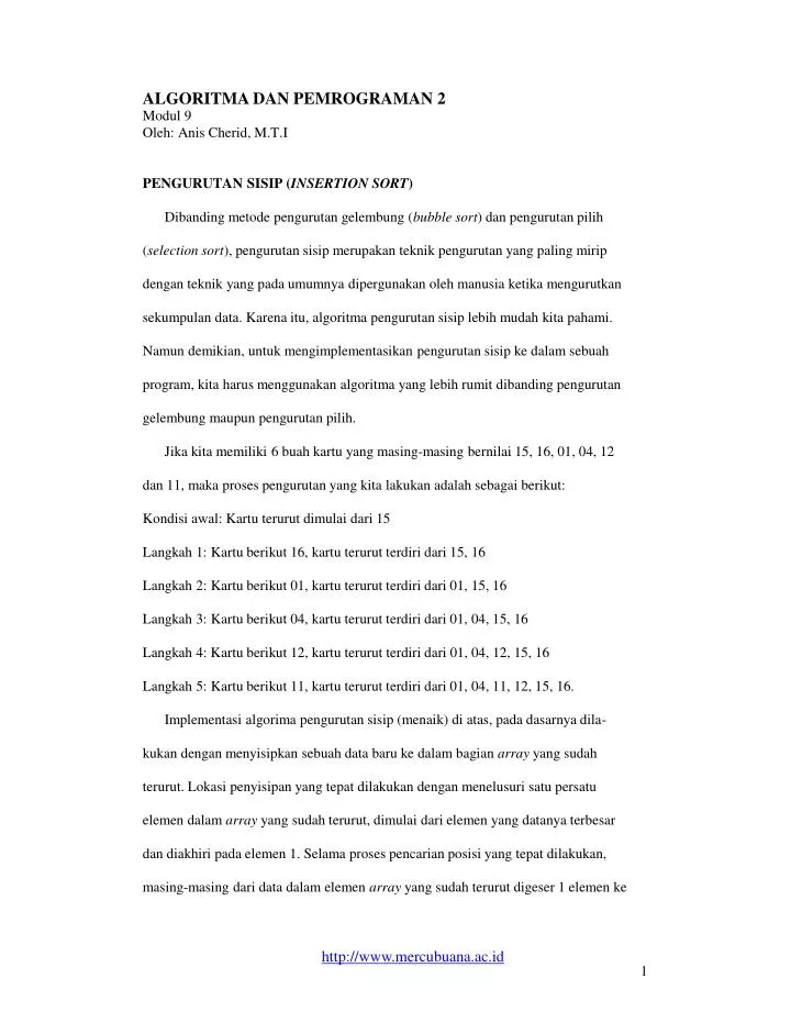 Algoritma Mengurutkan Nlai Bilangan Bulat Dari Yang Terkecil Ke