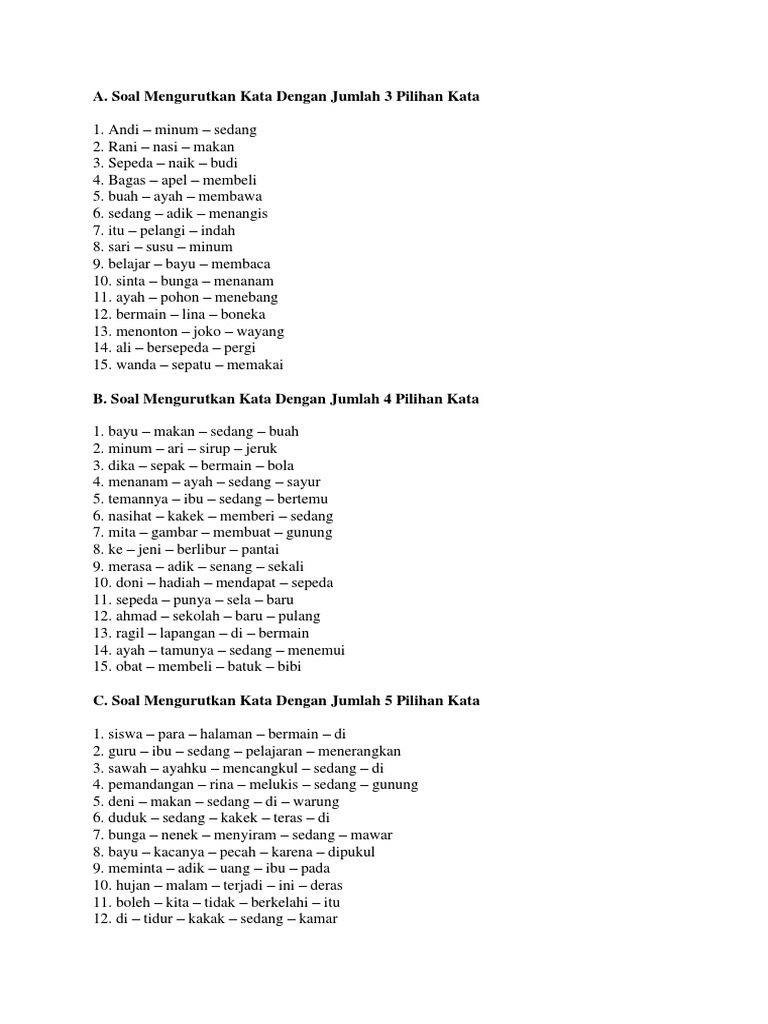 Latihan Soal Mengurutkan Kata Dan Kunci Jawaban Www Bimbelbrilian Co