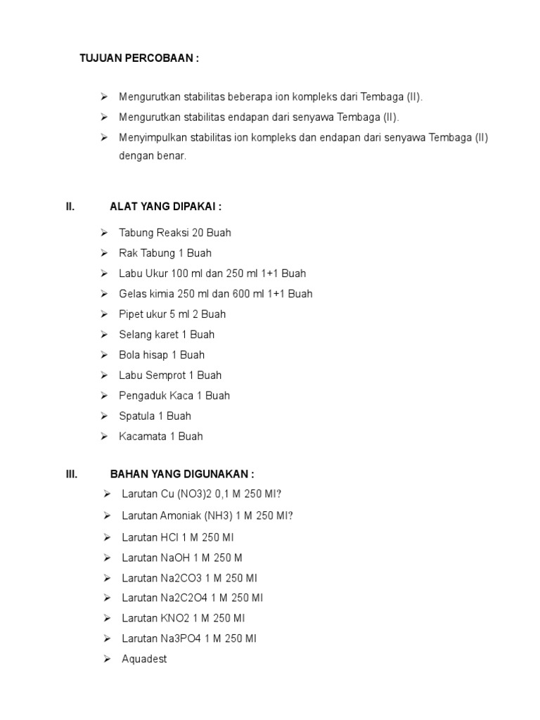 Laporan Stabilitas Ion Kompleks Dan Endapan Dari Senyawa Tembaga