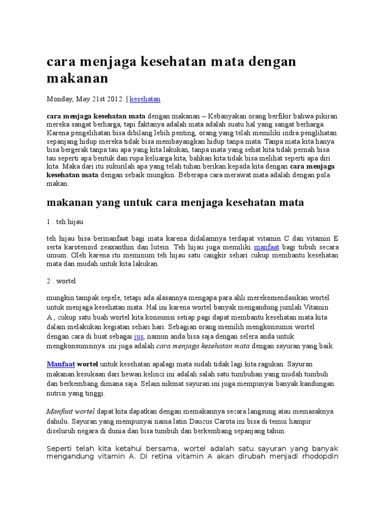 Cara Menjaga Kesehatan Mata Dengan Makanan