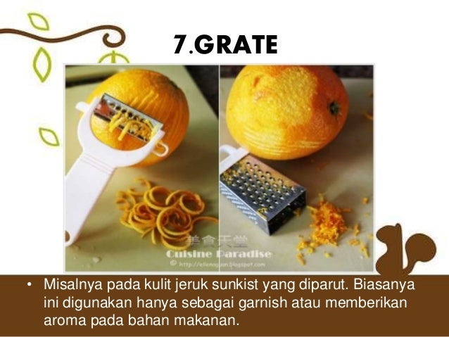 Macam macam potongan buah nama kelompok. Potongan cincang yang halus atau kasar potongan ini tidak mempunyai bentukukuran yang pasti.