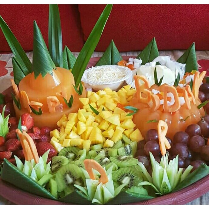 Gambar tumpeng buah. Tomat merupakan sesuatu yang sering dipakai sebagai hiasan. Mulai dari bunga wortel bunga cabe bunga timun mawar tomat mawar wortel bunga pokcoy burung lobak takir hiasan tepian dan. Buah pisang semangka strowberry dan anggur ini disulap apik menjadi kapal dengan lumba lumba lucu.