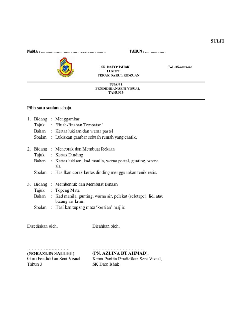 Soalan Final Exam P Seni Tahun 3