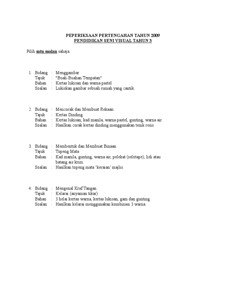 Soalan Final Exam P Seni Tahun 3 Docx Document