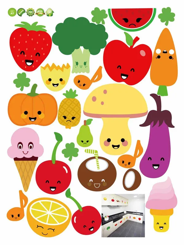 Stiker Dinding Dengan Bahan Mudah Dilepas Dan Gambar Kartun Buah