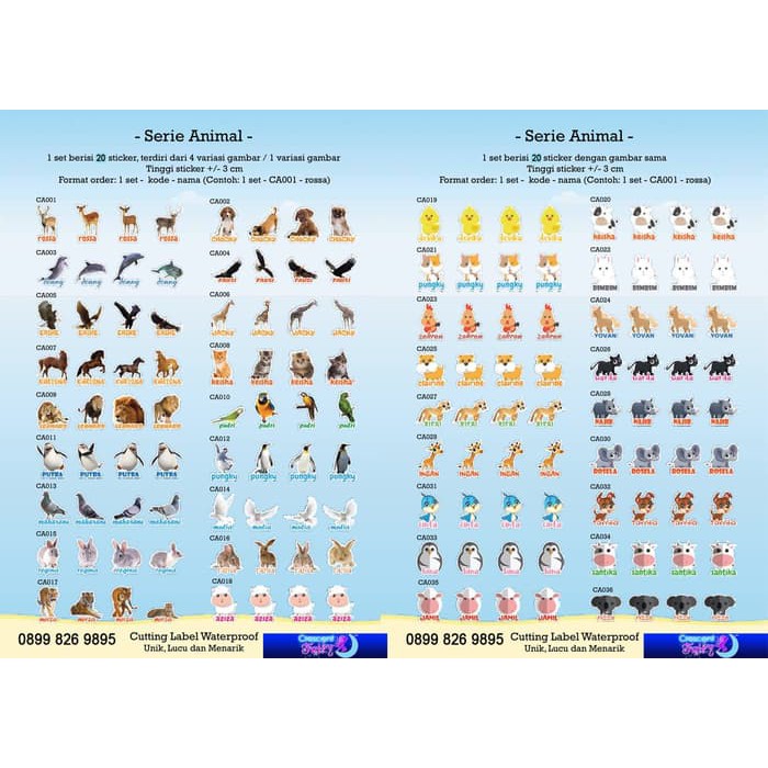 Cutting Sticker Stiker Label Nama Seri Buah Dan Hewan Animal