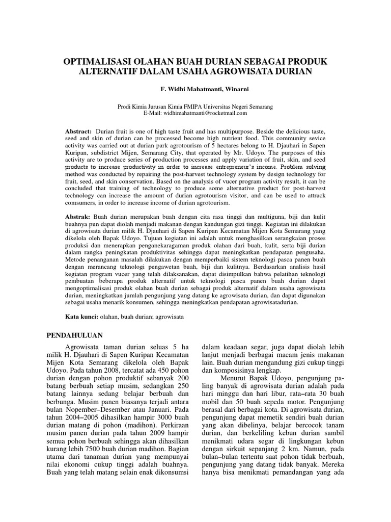 Karya Ilmiah Manfaat Olahan Buah Durian