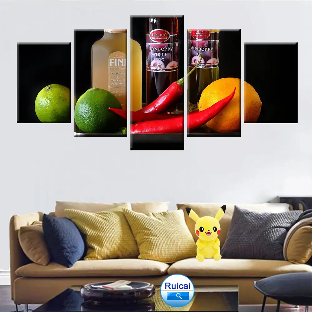 5 Panel Abstrak Kanvas Lukisan Buah Buahan Dan Sayuran Modern