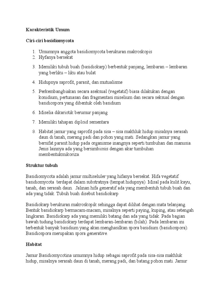 Basidiomycota Pengertian Ciri Struktur Tubuh Reproduksi