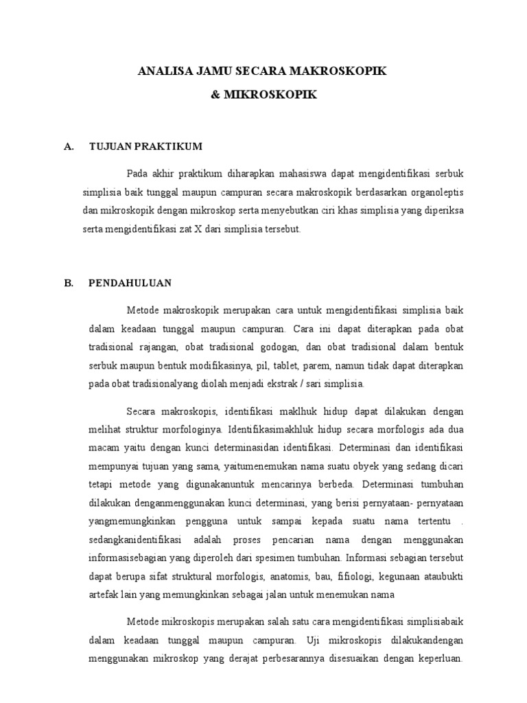 Laporan Praktikum Farmakognosi Ii Identifikasi Mikroskopik